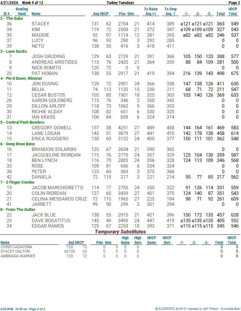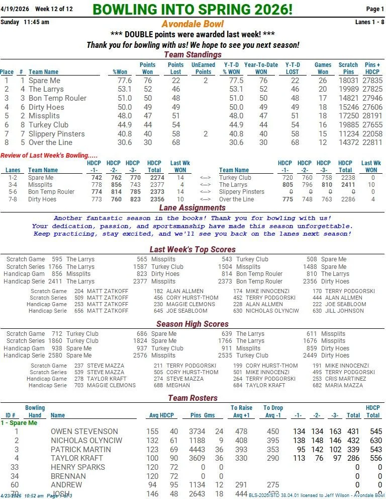 please note that these sheets are subject to change based on make up games.